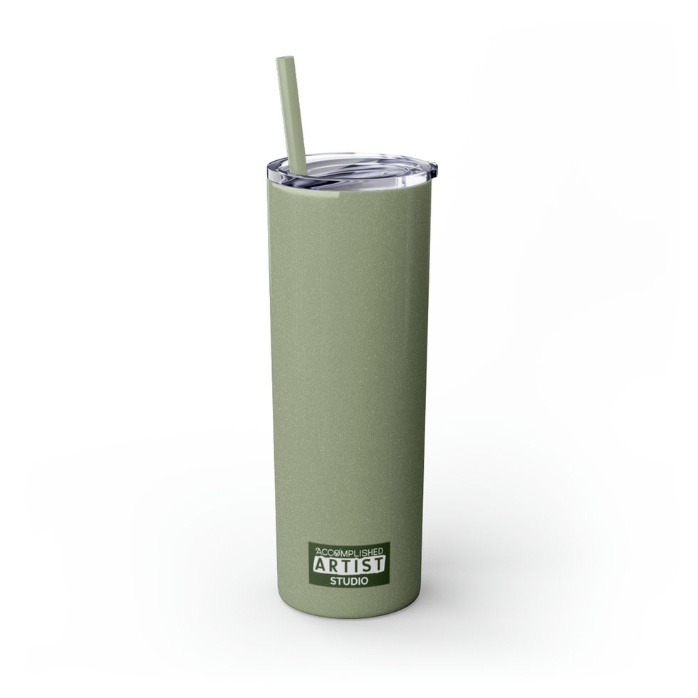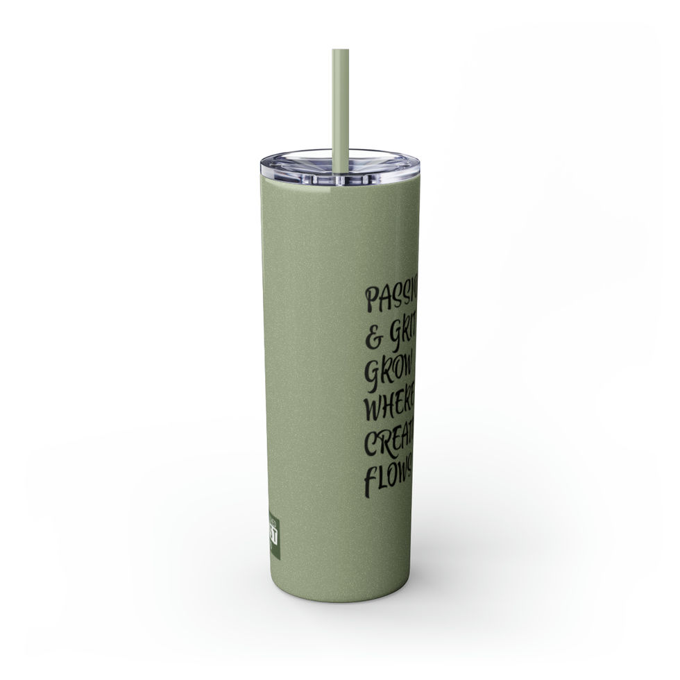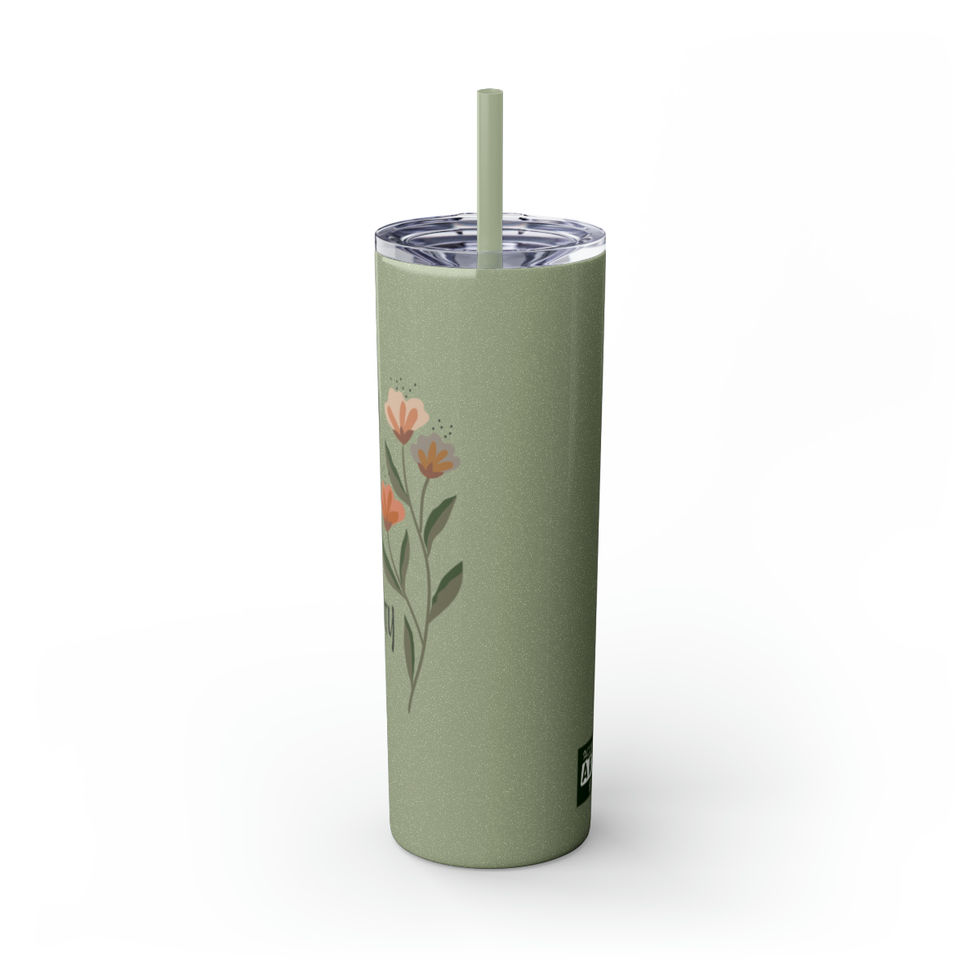 Creativity Grows Glittery Florals & Green Skinny Tumbler with Straw, 20oz